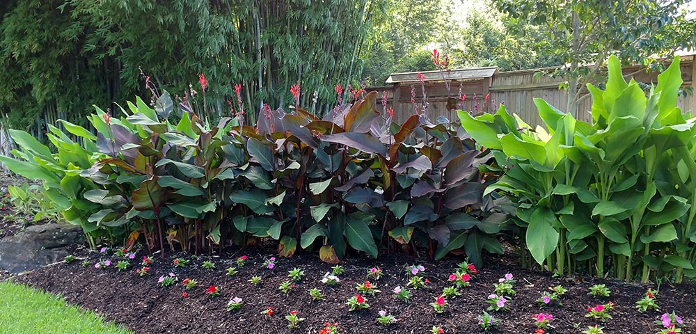 The yellow daisy-like flowers of Black-eyed Susan really pop when planted against the bold green or bronze leaves of Cannas.