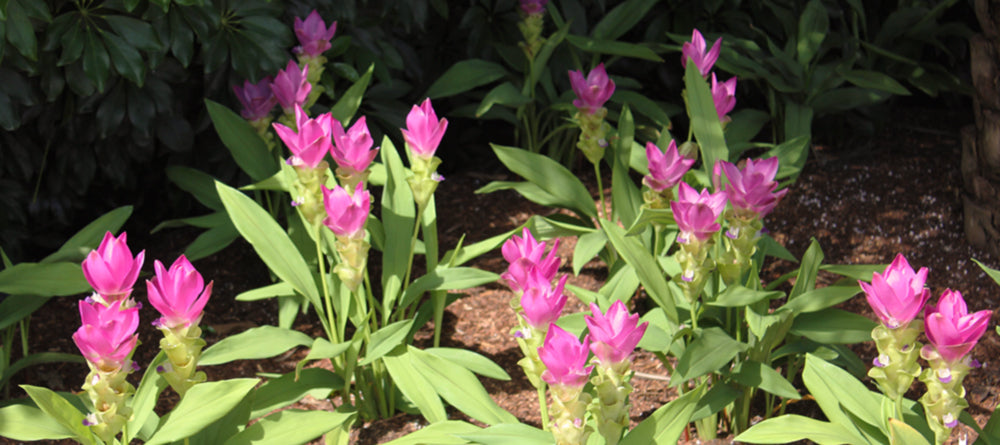 Curcuma is a stately and elegant summer-blooming flower that's a lot easier to grow than it looks! This heat-loving, long-blooming tropical plant produces gorgeous spires of pink, purple, or white flowers all summer long. Curcuma makes an outstanding addition to garden beds and borders, as well as container gardens. Or use it as an eye-catching tabletop centerpiece on your deck or patio.This easy outdoor plant can be grown by itself, but also makes an excellent accent to blue salvia, euvolvulus, caladium, and other flowers. Curcuma is also a excellent for mixing with tropicals such as hibiscus and purple elephant's ears in container gardens.
