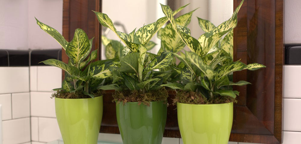 CrotonIn brighter spots, boldly variegated croton foliage adds even more drama and flair to dieffenbachia.