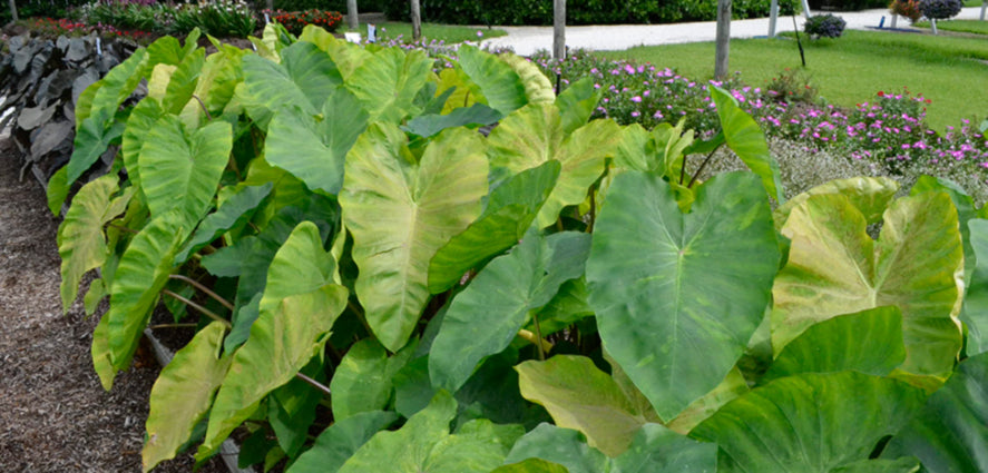 Elephant ear does best in rich, slightly moist soil. The plants thrive in sun or partial shade and look stunning in large planters or urns. Because this plant likes wet feet it can also be grown in bog or rain gardens. Fertilize elephant ear with a general purpose, slow release fertilizer in the spring.Elephant ear is not intended for human or animal consumption.
