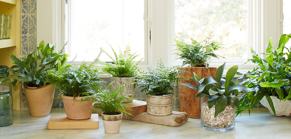 Keep ferns healthy and beautiful by providing them with average to above-average relative humidity levels. Their love of moist air makes ferns perfect houseplants for bright bathrooms or kitchens. If ferns don't get enough humidity, their fronds may turn brown and dry prematurely. Because they like humidity, most ferns are ideal plants for terrariums.