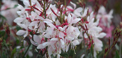 Butterflies will flock to your garden when you include gaura in your flower borders or containers. This sun-loving North American native plant is used as a perennial in warmer parts of the country and as an annual in colder regions. Gaura is heat and drought tolerant and can handle high humidity with ease. Gaura blooms all summer long producing graceful wands of nectar-rich white, pink, or bi-colored flowers that butterflies love. The deer-resistant plants grow 2 to 3 feet tall. Gaura makes an excellent container plant, too. Hardy from zones 5-9.Note: Botanists have reclassified Guara, so you may also see it listed as Oenothera lindheimeri.