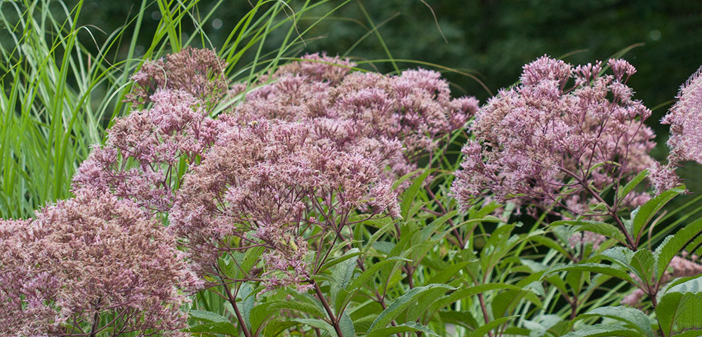 Note: Botanists have reclassified several Joe Pye weeds, so you may also see them as Eutrochium instead of Eupatorium.
