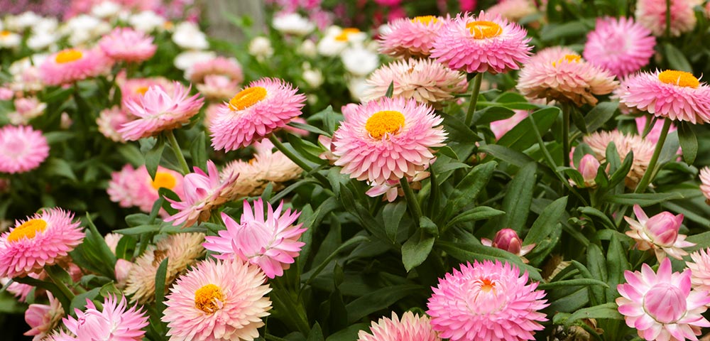 Strawflowers (Bracteantha) are easy-care and elegant annual plants that offer a long bloom season. At first glance, it might seem like they have a strange common name, but touch the brightly colored blooms and it becomes apparent. An excellent dried flower, the petals have a dry, papery feel. Just cut the blooms and enjoy them in DIY craft projects, such as dried-flower wreaths, swags, etc.Strawflowers thrive in sunny garden beds and borders. The plants are tidy and